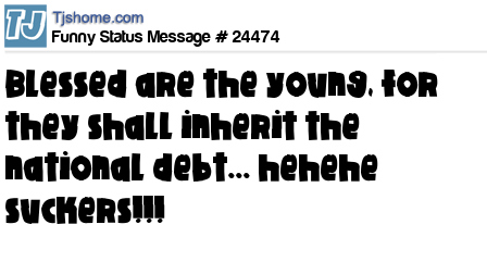 X Blessed are the young, for they shall inherit the national debt... hehehe suckers!!!