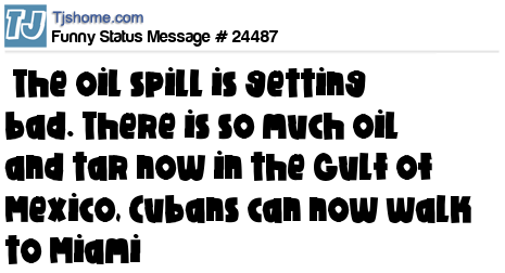 X says The oil spill is getting bad. There is so much oil and tar now in the Gulf of Mexico, Cubans can now walk to Miami