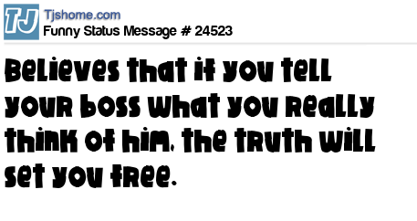 - # 15047 believes that if you tellyour boss what you really thinkof him, the truth will set youfree.