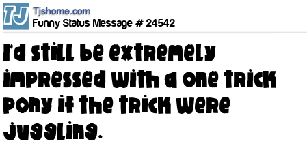X I'd still be extremely impressed with a one trick pony if the trick were juggling.