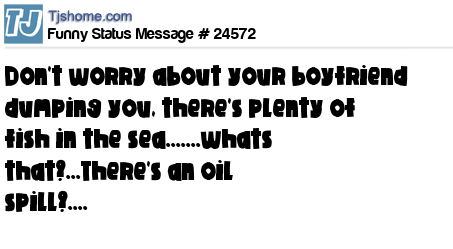 X says don't worry about your boyfriend dumping you, there's plenty of fish in the sea.......whats that?...There's an oil spill?....