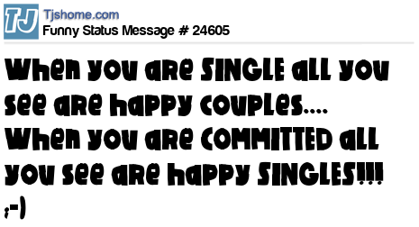 - # 25527 when you are single,all you see r happy couples.............when you r commited,all you see r happy singles. :))