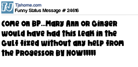 X is come on BP...Mary Ann or Ginger would have had this leak in the Gulf fixed without any help from the Progessor BY NOW!!!!!