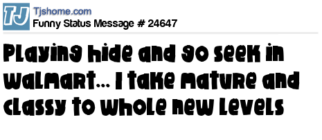 X is Playing hide and go seek in walmart... I take mature and classy to whole new levels