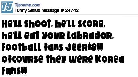 X is he'll shoot, he'll score, he'll eat your labrador, Football fans jeerig!! ofcourse they were Korea Fans!!