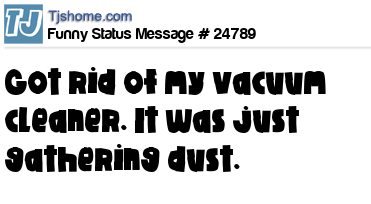 - # 46606 Got rid of my vacuum cleaner. It was just gathering dust