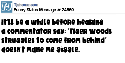 X It'll be a while before hearing a commentator say: "Tiger Woods struggles to come from behind" doesn't make me giggle.
