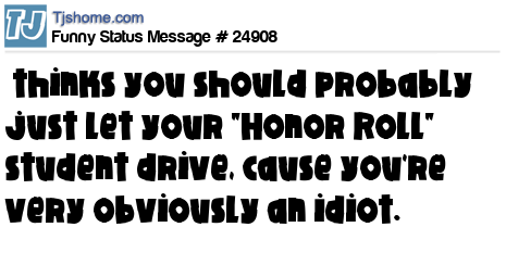 - # 36678 you should probably just let your "Honor Student" drive. You are obviously an idiot.