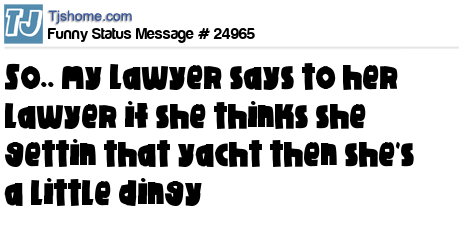 X says so.. my lawyer says to her lawyer if she thinks she gettin that yacht then she's a little dingy