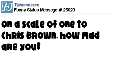 - # 52859 On a scale of one to Chris Brown, how angry are you?