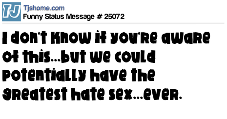 X I don't know if you're aware of this...but we could potentially have the greatest hate sex...ever.