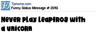 - # 189105 Never play leapfrog with a unicorn. That's all.
