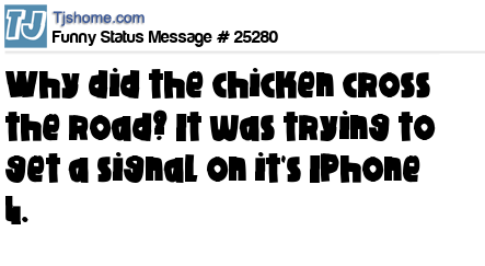 X Why did the chicken cross the road? It was trying to get a signal on it's IPhone 4.