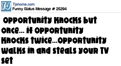 - # 120754 Opportunity only knocks once. If there's any more than that, it's prolly a Jehovah's Witness ツ