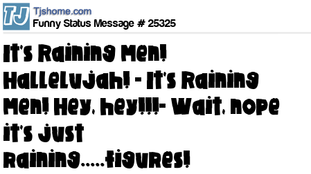 X is It's Raining Men! Hallelujah! - It's Raining Men! Hey, hey!!!- Wait, nope it's just raining.....figures!