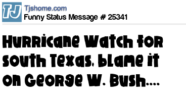 X says Hurricane Watch for south Texas, blame it on George W. Bush....