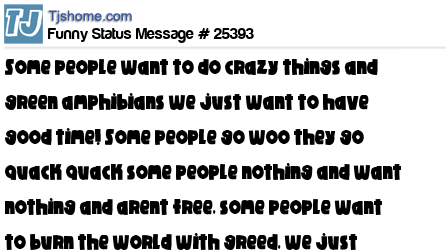 X is Some people want to do crazy things and green amphibians we just want to have good time! Some people go woo they go quack quack some people nothing and want nothing and arent free, some people want to burn the world with greed, we just want good time!