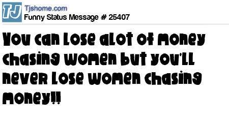 X is You can lose alot of money chasing women but you'll never lose women chasing money!!