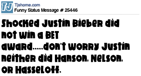 X is Shocked Justin Bieber did not win a BET award.....don't worry Justin neither did Hanson, Nelson, or Hasseloff.