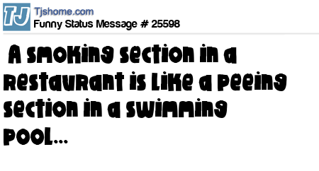 - # 9103 "having a smoking section in a restaurant should b like having a peeing section in a swimming pool......." right??