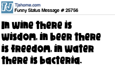 - # 62947 In wine there is wisdom, in beer there is freedom, in water there is damn bacteria.
