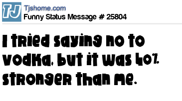- # 126694 I tried to say no to the vodka but it was 40% stronger than me