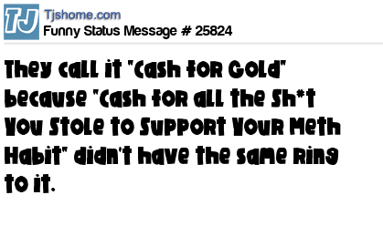 X They call it "Cash for Gold" because "Cash for all the Sh*t You Stole to Support Your Meth Habit" didn't have the same ring to it.