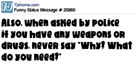 X says Also, when asked by police if you have any weapons or drugs, never say "Why? What do you need?"