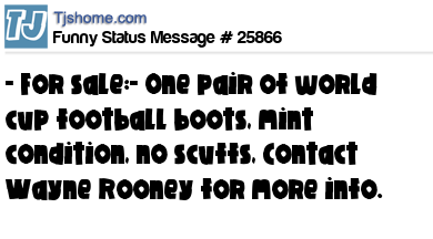 X - For sale:- One pair of world cup football boots, mint condition, no scuffs, Contact Wayne Rooney for more info.