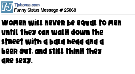 - # 64049 Women will never be equal to men until they can walk down the street with a bald head and beer gut and still think they're sexy...