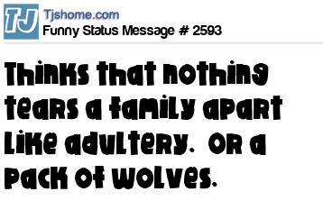 X thinks that nothing tears a family apart like adultery. Or a pack of wolves.