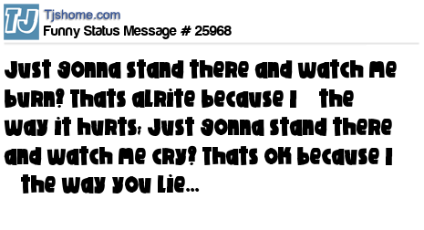 X Just gonna stand there and watch me burn? Thats alrite because I ♥ the way it hurts; Just gonna stand there and watch me cry? Thats ok because I ♥ the way you lie...