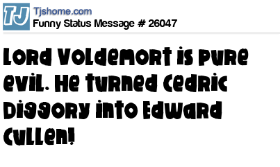 - # 21369 Lord Voldemort is real evil. He turned Cedric Diggory into Edward Cullen.