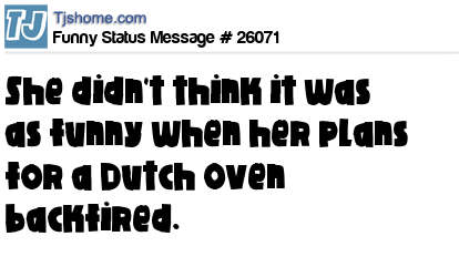 X says she didn't think it was as funny when her plans for a Dutch Oven backfired.
