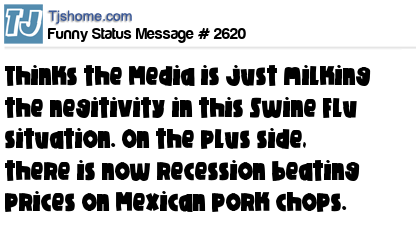 X thinks the Media is just milking the negitivity in this Swine Flu situation. On the plus side, there is now recession beating prices on Mexican pork chops.