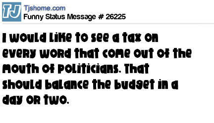 X says I would like to see a tax on every word that come out of the mouth of politicians. That should balance the budget in a day or two.