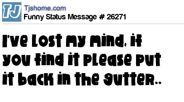 - # 72625 What's wrong with having your mind in the gutter all the time?! If it weren't for the gutter, my mind would be homeless!!!