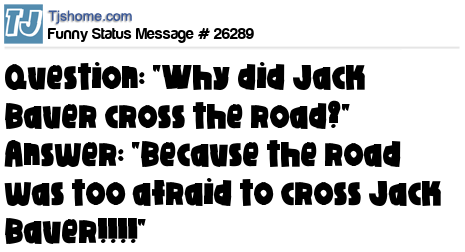 X Question: "Why did Jack Bauer cross the road?" Answer: "Because the road was too afraid to cross Jack Bauer!!!!"