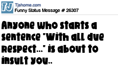 X Anyone who starts a sentence "With all due respect..." is about to insult you..