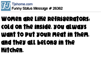 X Women are like refrigerators; cold on the inside, you always want to put your meat in them, and they all belong in the kitchen.