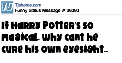- # 15807 If Harry Potter's so magical, why cant he cure his own eyesight and get laid. A teenage lad shouldnt need a broomstick to cling onto " ;D
