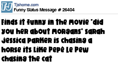 X finds it funny in the movie "did you her about morgans" sarah jessica parker is chasing a horse its like Pepé Le Pew chasing the cat