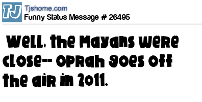 - # 22877 The "Oprah Winfrey show" ends in 2011. No wonder the Americans think the world will end in 2012.