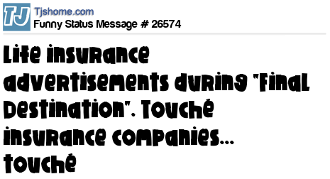 X Life insurance advertisements during "Final Destination". Touché insurance companies... touché
