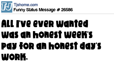 X is All I've ever wanted was an honest week's pay for an honest day's work.