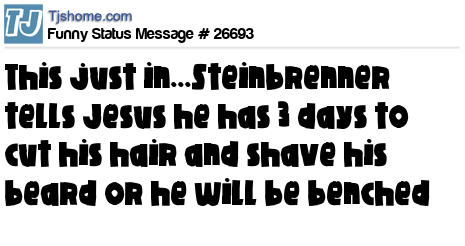 X is This just in...Steinbrenner tells Jesus he has 3 days to cut his hair and shave his beard or he will be benched