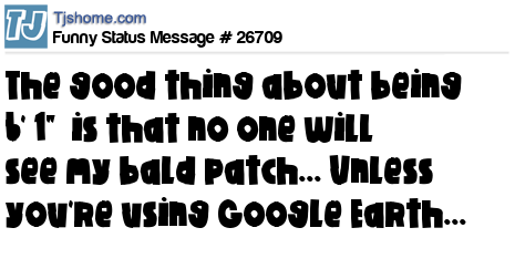 X  The good thing about being 6' 1"  is that no one will see my bald patch... Unless you're using Google Earth...