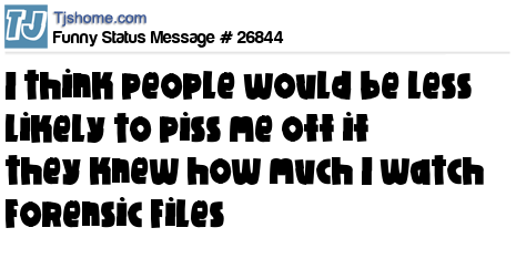 X I think people would be less likely to piss me off if they knew how much I watch Forensic Files