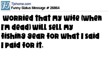 X is worried that my wife (when I'm dead) will sell my fishing gear for what I said I paid for it.