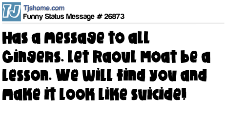 X has a message to all Gingers. Let Raoul Moat be a lesson. We will find you and make it look like suicide!
